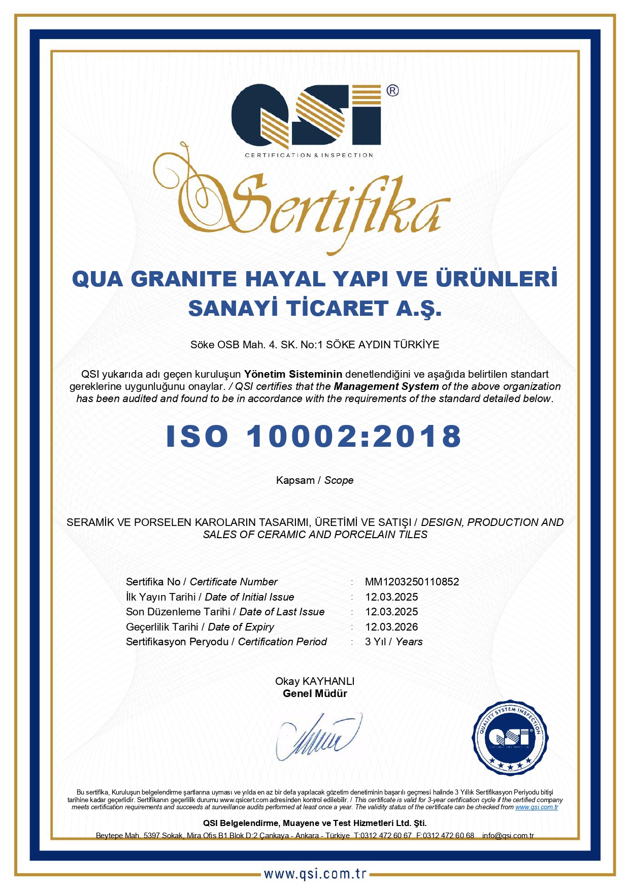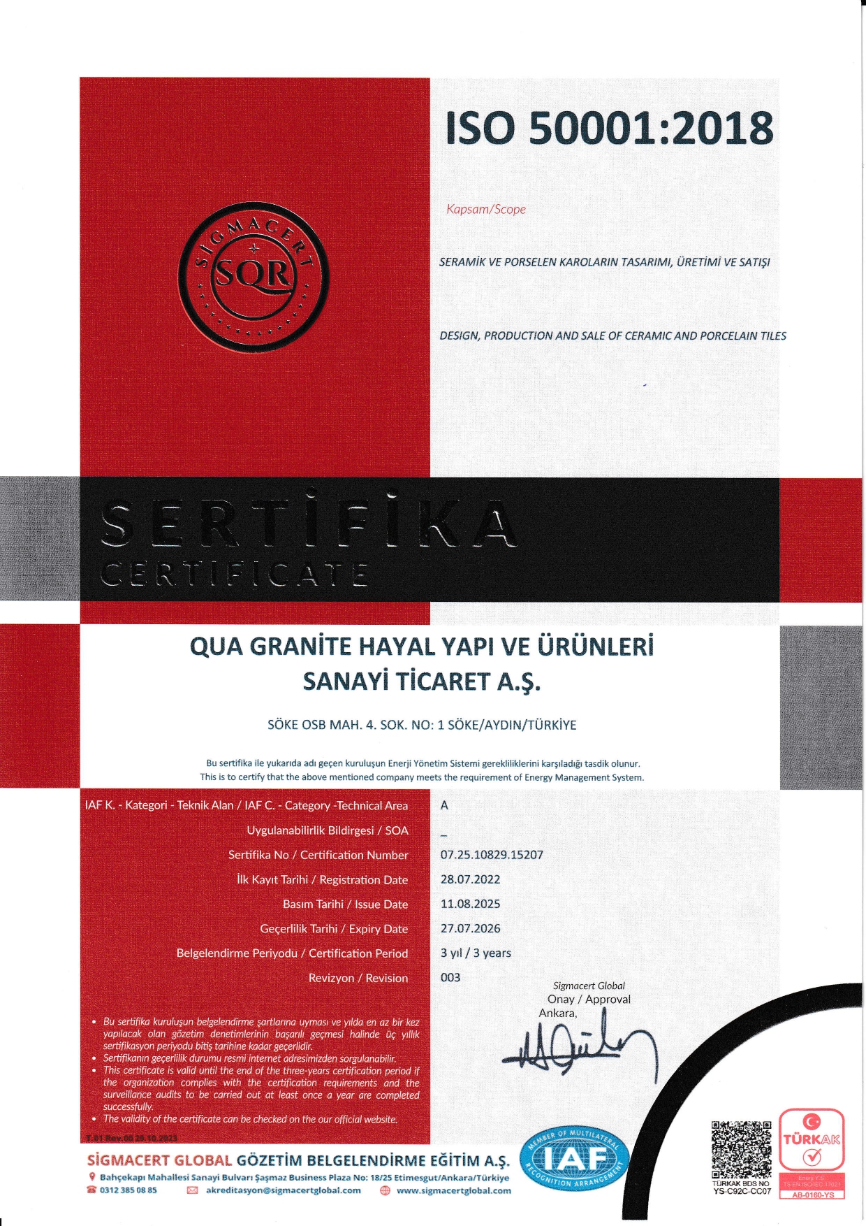 3. Kalite Sertifikaları