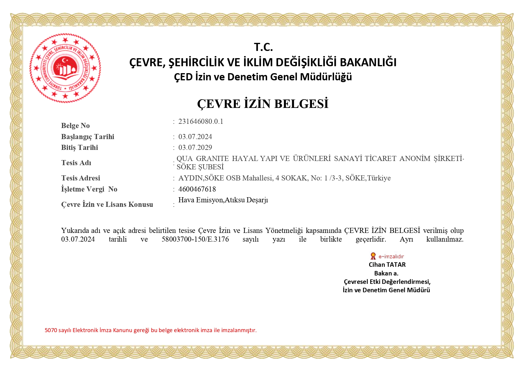 Çevre İzin Belgesi