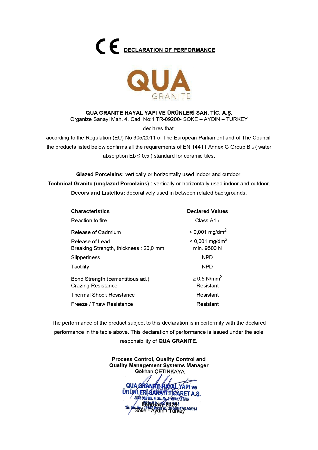Enviromental Product Declaration Porcelain Tiles 7mm