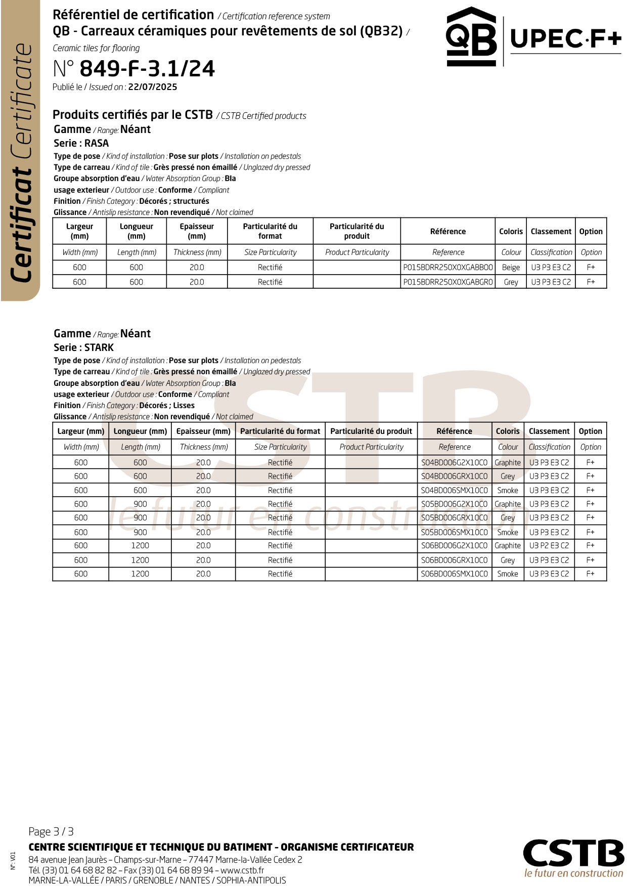 Enviromental Product Declaration Porcelain Tiles 20mm